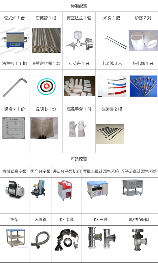 主機1臺,密封法蘭1套,“O”型圈4個,石英管1根,管堵4個,坩堝鉤1把, 說明書、合格證、保修卡各1份 |