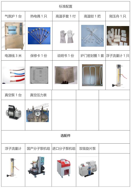 主機1臺,坩堝鉗1把,高純氧化鋁坩堝2個,說明書、合格證、保修卡各1份 |