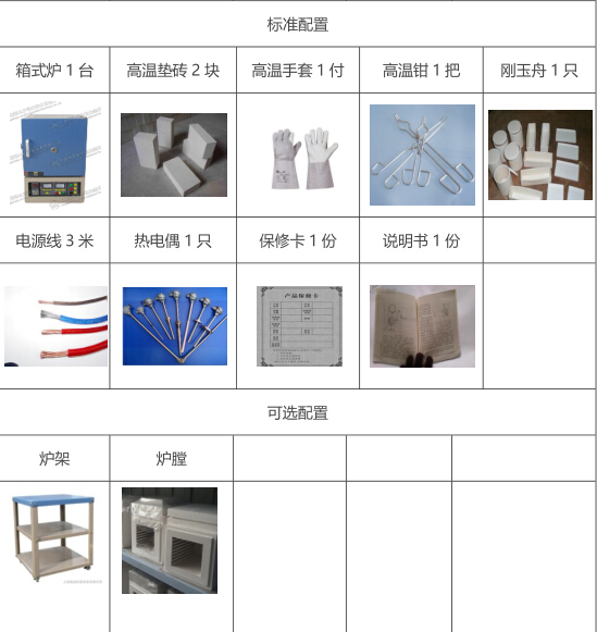 主機(jī)1臺(tái),坩堝鉗1把,高溫手套1副,說明書、合格證、保修卡各1份 |