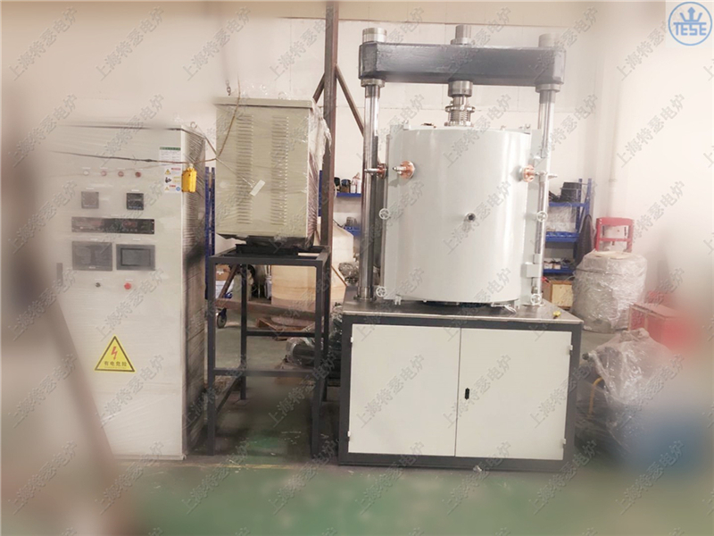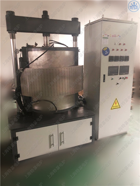 立式真空熱壓爐,采用雙層殼體,兩層之間用水冷卻。爐蓋及爐身上各設有一個觀察窗,可以觀察工件加熱情況。爐內采用石墨發(fā)熱體,發(fā)熱體外圍是由石墨復合碳氈組成的隔熱裝置。測溫元件采用鎢錸熱電偶和紅外測溫,即0-1600度以下采用熱電偶自動控溫,1600度以上熱電偶退到保溫層,紅外測溫儀開始工作,實現(xiàn)自動控溫。