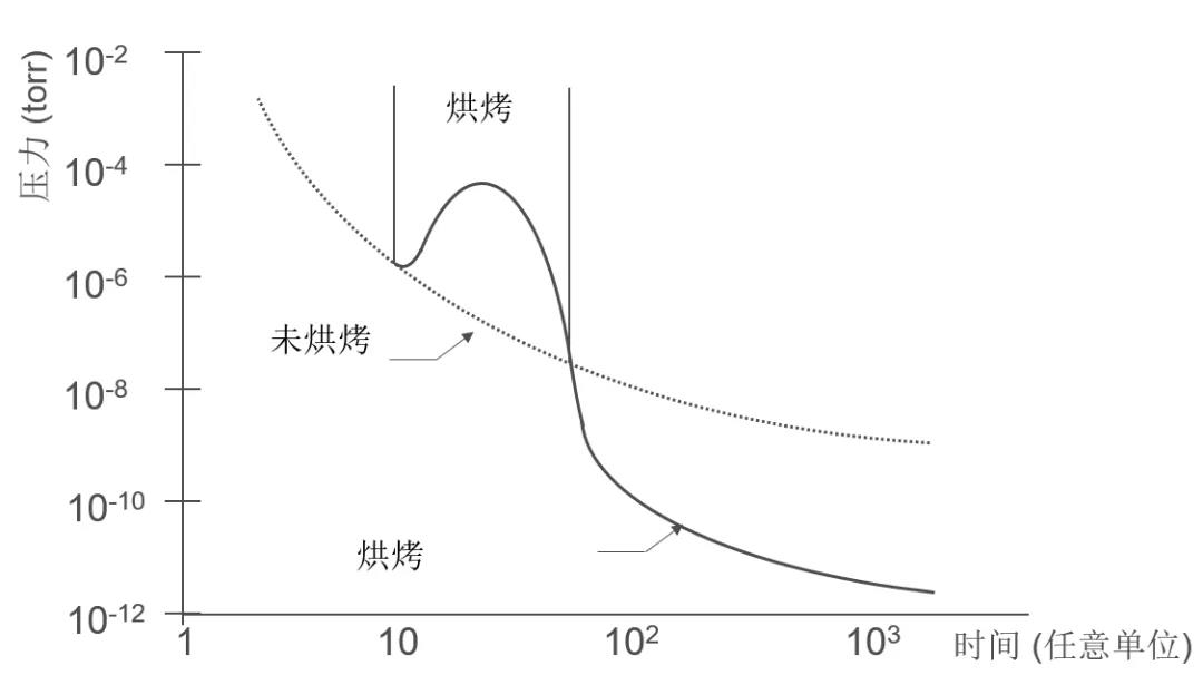 放氣是溶解、吸附或夾雜在材料中的氣體在真空環境下緩慢釋放出來的過程,水、油污、密封劑、潤滑劑和粘合劑是最常見的放氣來源,而即使是金屬和玻璃等固體,其材料表面或內部在真空下也會釋放出氣體。對高真空超高真空環境可能接觸到的表面進行拋光、清潔或烘烤處理可以有效的減小系統放氣率,從而大大縮短達到目標壓力所需要的時間。